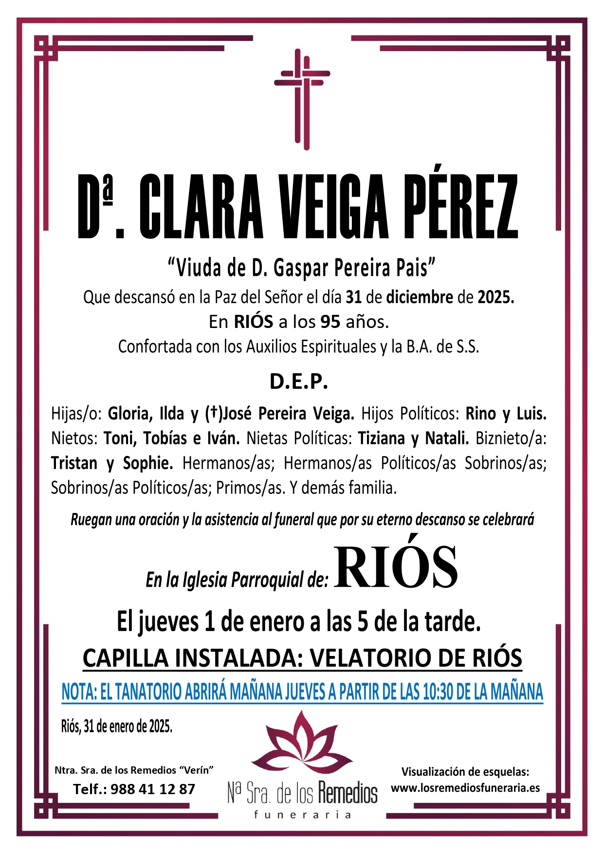 En Rúa Elle, 51, a sólo 50 metros de las instalaciones de nuestro tanatorio, en Verín (antiguo Supermercado Familia)